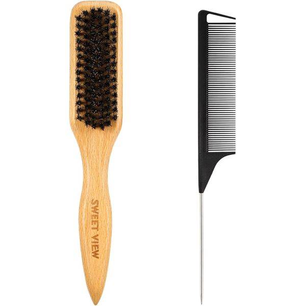 Boar Bristle Slick Back Hair Brush & Comb